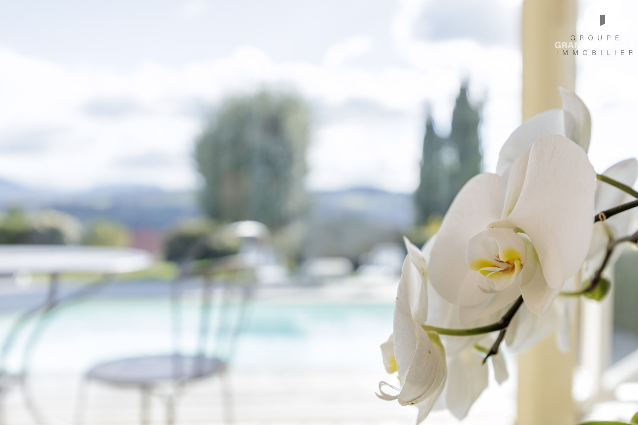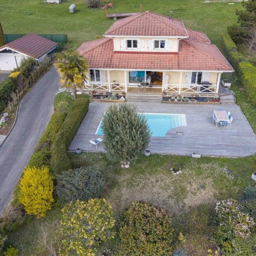 À l’extérieur, le jardin paysager invite à la détente avec une spacieuse terrasse d’environ 120 m2, véritable extension des pièces à vivre, et une piscine creusée, idéales pour profiter pleinement des beaux jours tout en admirant la vue dégagée sur les reliefs environnants.