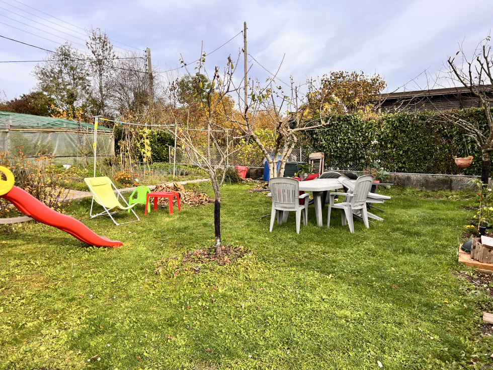 Situé à Seynod, dans un secteur calme et recherché à proximité du collège et des commodités, cet appartement T4 de 64 m² occupe le 1er étage d’une maison construite en 1960, composée de seulement deux logements. Traversant et lumineux, il offre une pièce de vie conviviale avec cuisine ouverte sur séjour agrémenté d'un poêle à granule et donnant accès à un balcon exposé plein sud, idéal pour profiter du soleil. La partie nuit comprend trois chambres bien agencées, ainsi qu’une salle d’eau fonctionnelle. À l’extérieur, l’appartement bénéficie d’un jardin privatif d’environ 100 m², parfait pour les repas en plein air, les jeux d’enfants ou un espace potager. Le confort est assuré par le poêle à granulés et il est complété par un chauffage individuel électrique. En annexes, le bien dispose d’une buanderie, d’un grand garage et d’une cave, offrant de réelles facilités de rangement et de stationnement. Un bien rare sur le secteur, qui allie le calme d’un environnement résidentiel, le charme d’une petite copropriété et la proximité immédiate des commodités. Pour plus d'informations contacter : Anne 07.58.63.23.12 ou Pauline 06.14.52.85.29